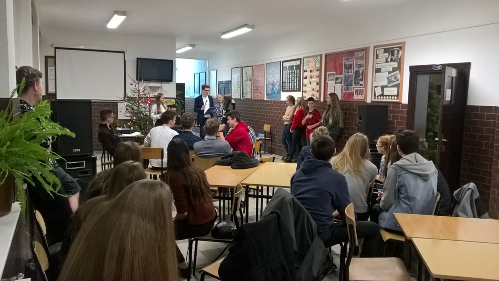 8 grudnia odbyła się w Liceum Ogólnokształcącym w Psarach "Noc w szkole", podczas której uczniowie uczestniczyli w panelu poświęconemu twórczości filmowej. Noc filmowa była pełna różnorodnych atrakcji, które zostały przygotowane przez uczniów zgłoszonych do projektu Filmoteki Szkolnej. Uczestnikami spotkania byli uczniowie liceum oraz klas gimnazjalnych ze szkoły w Psarach. Spotkanie rozpoczęło się od quizu dotyczącego znajomości muzyki filmowej. Fragmenty ścieżek dźwiękowych wprowadziły wszystkich w wyśmienity humor, pozwoliły przypomnieć sobie utwory najnowsze i te nieco starsze, największe hity kinowe oraz filmy ambitne, nieraz niszowe. W tej części konkursowej Anita okazała się najlepsza - tym samym wywalczyła sobie darmowy voucher do kina. Nagrodami pocieszenia były słodkie upominki.