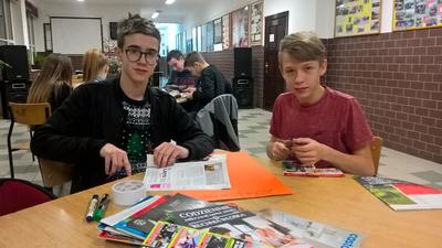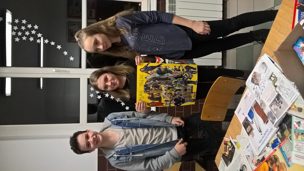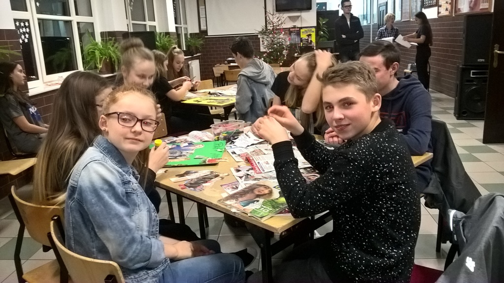 Następnym punktem programu były warsztaty dotyczące planów filmowych. Koordynator projektu wyjaśnił i scharakteryzował podstawowe rodzaje planów filmowych. Grupy warsztatowe miały przed sobą konkretne zadanie - należało przygotować plakat z rodzajem planu, który został uczniom wskazany. Zdjęcia planów wycinano z kolorowych gazet i czasopism, naklejano i podpisywano. Każda z zaangażowanych osób dostała słodki upominek.