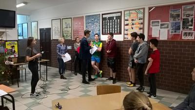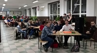 Kolejną atrakcją był konkurs wiedzy na temat filmów. Poziom konkursu był bardzo wysoki, pytania bardzo zróżnicowane. Uczniowie poradzili sobie wspaniale - dziesięcioro uczniów walczyło nieugięcie, by wygrać kolejny darmowy voucher do kina. Jednak i tym razem Anita była najlepsza - należy przyznać, że posiada ona ogromną wiedzę zarówno na temat kina polskiego, jak i światowego. Po konkursie odbyły się filmowe kalambury, gdzie każdy mógł spróbować swoich sił zarówno w pokazywaniu tytułów filmów, jak i ich zgadywaniu. Osobom, które bardzo dobrze czują się w szkolnej hali sportowej, dyrektor szkoły Jarosław Kacorzyk zaproponował kilkugodzinny mecz siatkówki pod hasłem "Zagraj jak Agata Mróz!". Nawiązano tym samym do filmu "Nad życie", którego fragmenty sportowi zapaleńcy w dalszej części nocy mogli zobaczyć.