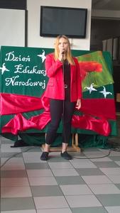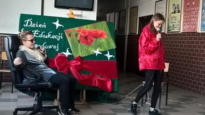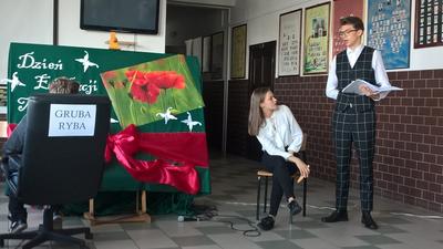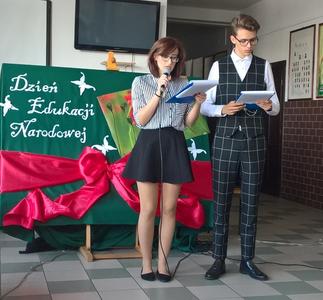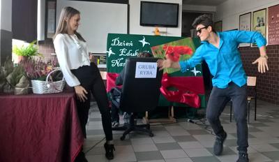 12 października obchodziliśmy w Liceum Ogólnokształcącym Dzień Edukacji Narodowej. Święto szczególne – święto nauczycieli, uczniów oraz wszystkich pracowników oświaty. Program artystyczny był niecodziennym upominkiem skierowanym do nauczycieli i pracowników szkoły. Uczniowie przygotowali skecz pt. „Marzenia do spełnienia, czyli sfrustrowana nauczycielka”. Karolina - w roli tytułowej nauczycielki - zrobiła na wszystkich ogromne wrażenie, dopełnieniem były doskonałe role męskie; lokaja Jana (Sebastian), roztańczonego macho (Paweł), tajemniczego narratora (Eryk) oraz ryby (ba, proszę Państwa – bardzo grubej ryby! W tej roli niezastąpiony Maciek). Okazało się - co było do przewidzenia - że nauczyciel potrafi być szczęśliwy tylko w murach szkoły.