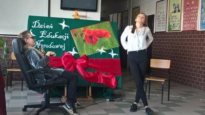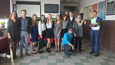 Literackim upominkiem dla nauczycieli i pracowników szkoły były limeryki, krótkie spersonalizowane, humorystyczne wierszyki autorstwa uczniów klasy trzeciej. Magda, Kinga i Martin zadbali o niezwykłą oprawę muzyczną, piosenki wprowadziły pełen refleksji klimat i pobudziły zebranych do zadumy.