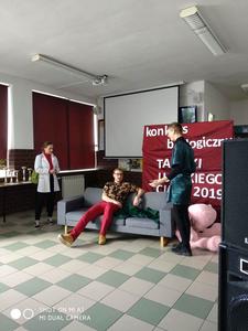 Dnia 13 marca 2019, w LO w Psarach odbył się trzeci konkurs biologiczny dla uczniów okolicznych szkół podstawowych, którego tematyką były anatomia i fizjologia człowieka oraz zagadnienia profilaktyki chorób i zasad higieny oraz zdrowego trybu życia. Honorowy patronat nad konkursem objął Burmistrz Woźnik, pan Michał Aloszko, który był fundatorem nagród. W konkursie wzięli udział uczniowie sześciu szkół: z Kamienicy, Ligoty, Lubszy, Psar, Strzebinia i Woźnik. Uczestnicy rozwiązywali test obejmujący całość wiedzy z anatomii i fizjologii ciała ludzkiego i walczyli o punkty w konkursie indywidualnym i drużynowym. Rywalizacja w konkursie indywidualnym była bardzo wyrównana i konieczna była dogrywka, aby wyłonić trzecie miejsce. Zwycięzcą konkursu został Jakub Potempa, pokonując o jeden punkt Michalinę Zarębę, obydwoje ze Szkoły Podstawowej w Woźnikach, a trzecie miejsce zajęła Karolina Feliks ze Szkoły Podstawowej w Strzebiniu. W konkursie drużynowym z bardzo dużą przewagą punktową zwyciężyła drużyna ze szkoły w Woźnikach przed szkołami w Strzebiniu i Lubszy. Podsumowaniem konkursu był quiz z wiedzy o człowieku oraz skecze związane z tematyką konkursu, przygotowane przez uczniów klasy drugiej i trzeciej. Uczniowie wszystkich szkół zaprezentowali wysoki poziom i wykazali się dużą wiedzą z ciekawych i trudnych zagadnień dotyczących budowy i funkcjonowania ciała człowieka. Nagrodą dla wszystkich uczestników konkursu i ich nauczycieli będzie wycieczka do Krakowa, do Muzeum Instytutu Anatomii Collegium Medicum Uniwersytetu Jagiellońskiego oraz Muzeum Farmacji, która odbędzie się w maju. Dla uczniów szkół podstawowych będzie to kolejna okazja do poszerzenia swojej wiedzy z dziedzin, które ich szczególnie interesują. Zwycięzcom gratulujemy, a wszystkim uczestnikom i opiekunom dziękujemy za udział i włożoną w przygotowanie do konkursu pracę.