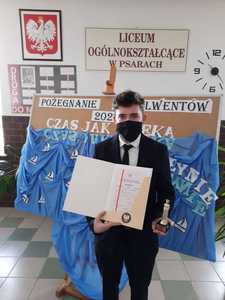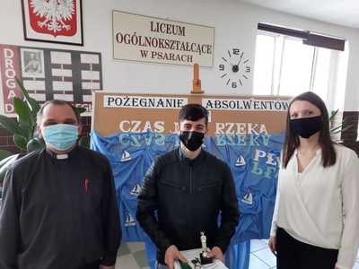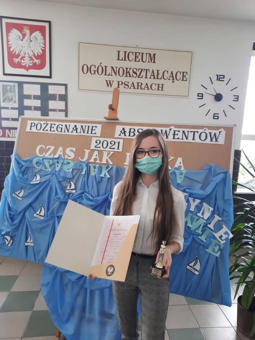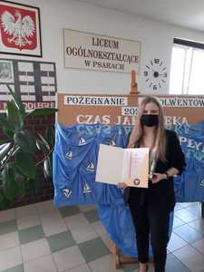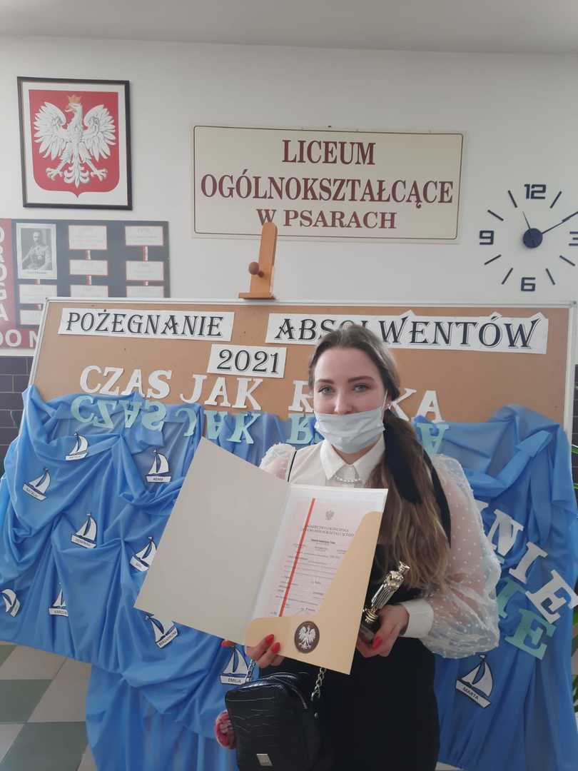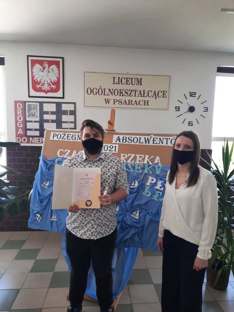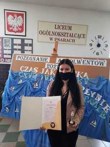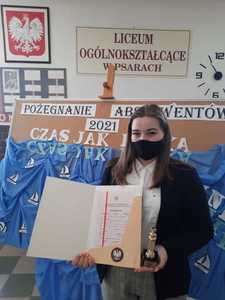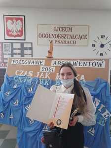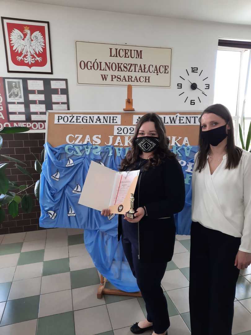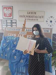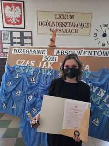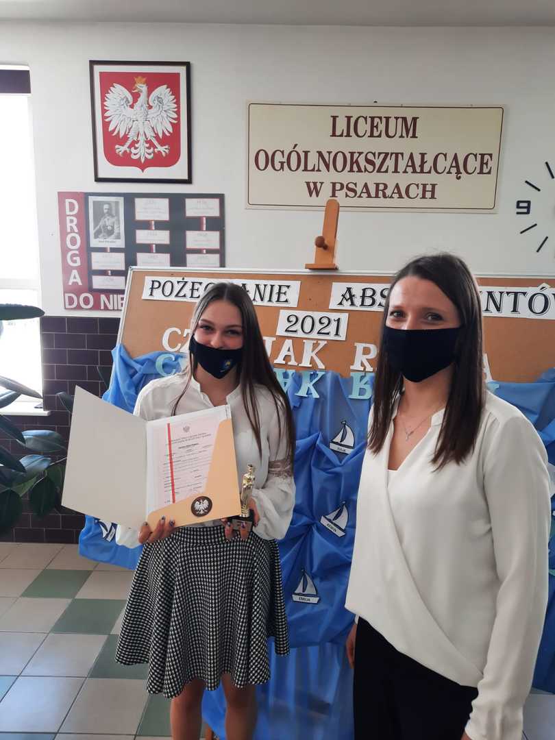 Świadectwa ukończenia szkoły rozdane. Z wiadomych względów uroczystość była bardzo skromna, ale nie zabrakło wzruszeń. Abiturienci otrzymali również podziękowania za pracę na rzecz szkoły i pamiątkowe statuetki. Gratulacje należą się wszystkim, a na specjalne wyróżnienie zasługują Emilia Machoń i Julia Pogoda, które ex aequo uzyskały najwyższą średnią ocen i zostały nominowane do Nagrody Burmistrza Woźnik.