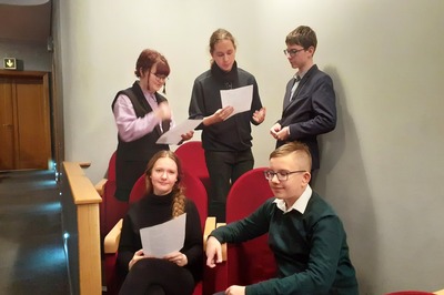 Po spektaklu uczniowie wzięli udział w warsztatach teatralnych. Odgrywając krótkie sceny zprzedstawienia, odkrywali w sobie aktorskie talenty...