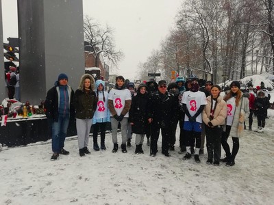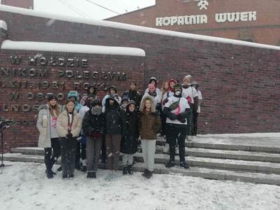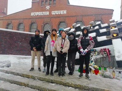 . Uczniowie założyli symboliczne koszulki i razem z opiekunami pobiegli ulicą Wincentego Pola pod Krzyż-Pomnik Górników Poległych. Nie straszny im był śnieg, wiatr i wilgoć.