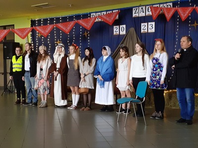 "Uczniowie klasy pierwszej wystawili Jasełka dla dzieci przebywających na turnusie w Ośrodku Rehabilitacyjnym w Rusinowicach. Serdecznie dziękujemy ks. Krzysztofowi Sędłakowi oraz uczniom za zaangażowanie!"