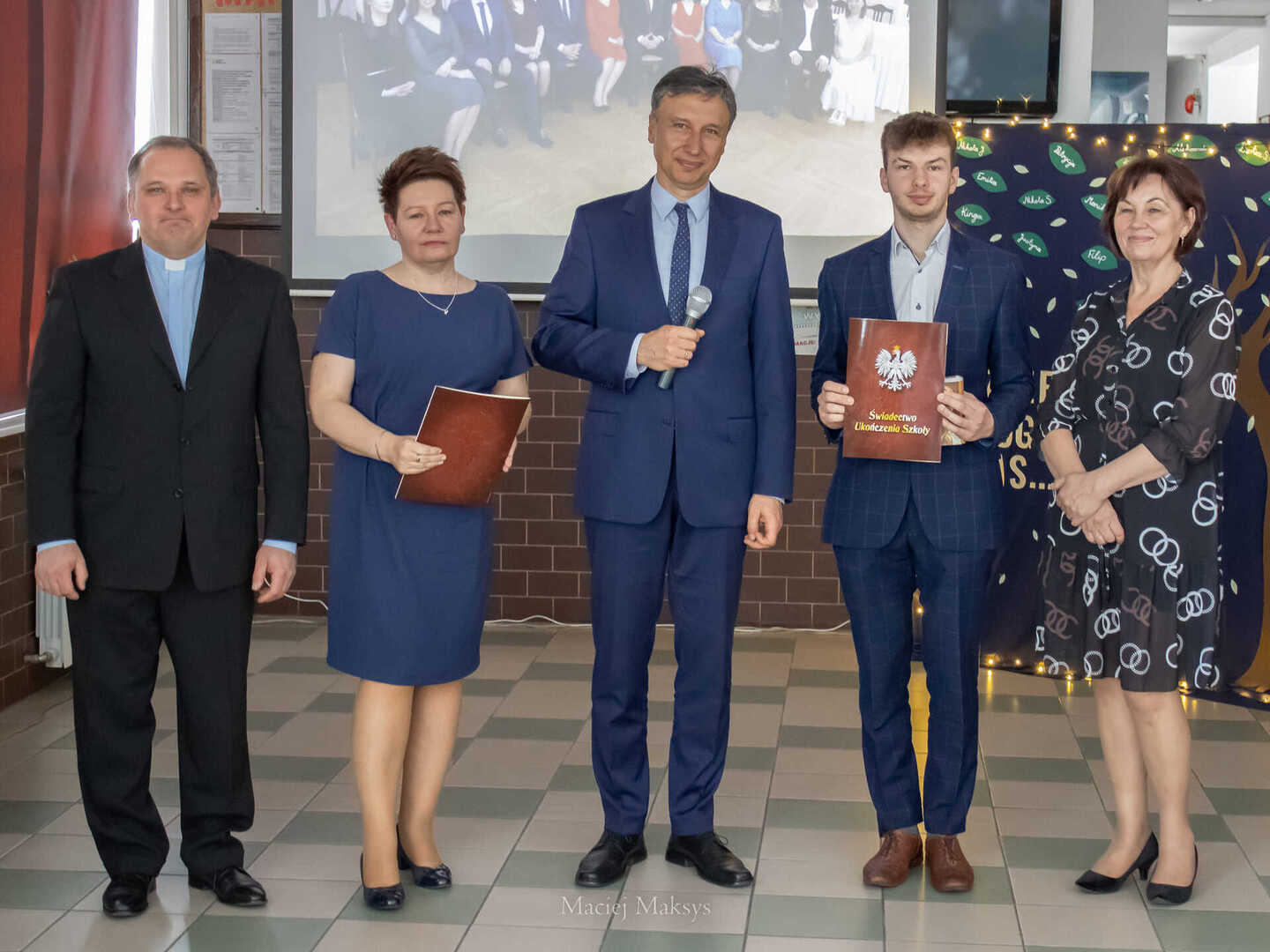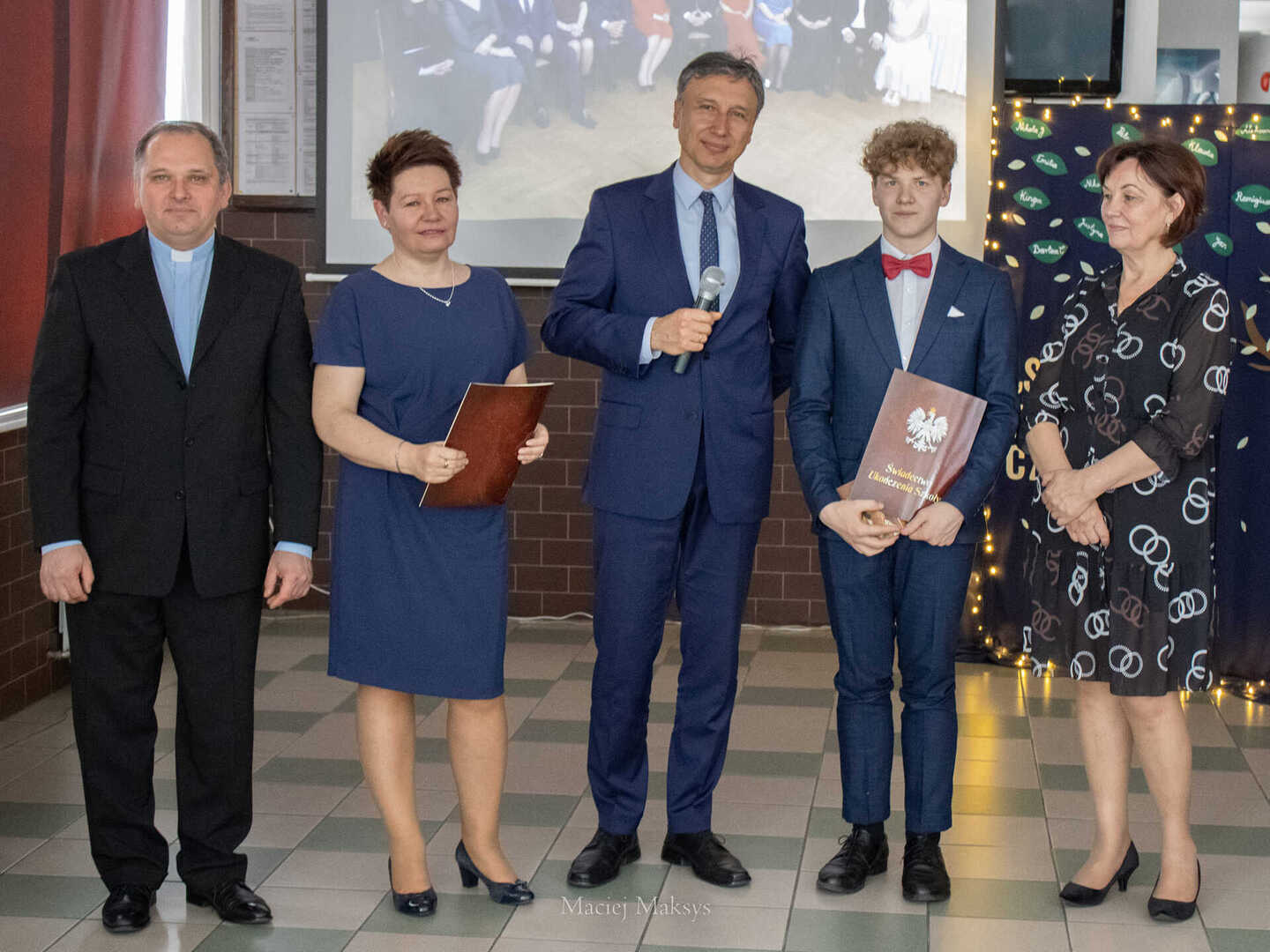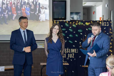 Nie zabrakło również ważnych słów i życzeń, które do maturzystów skierowali: burmistrz Woźnik pan Michał Aloszko, dyrektor Liceum pan Jarosław Kacorzyk, dyrektor ZEASz pani Zofia Cichowska, a także, próbująca opanować wzruszenie, wychowawczyni klasy czwartej pani Renata Duda. Nagrodę Burmistrza Woźnik dla najlepszego ucznia kończącego naukę odebrała Michalina Zaręba - gratulujemy
