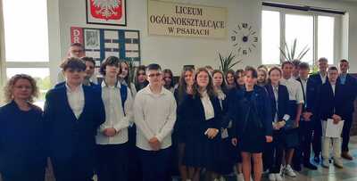 Inaugurując rok szkolny 2023/2024, powitaliśmy w naszej szkole bardzo liczną klasę pierwszą (na zdjęciu, wraz z wychowawczynią p. Dominiką Cieślak i dyrektorem liceum). WSZYSTKIM naszym uczniom życzymy wielu sukcesów szkolnych, a także (a może przede wszystkim) radości z bycia razem i zadowolenia z rozwoju własnych zainteresowań i uzdolnień
