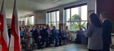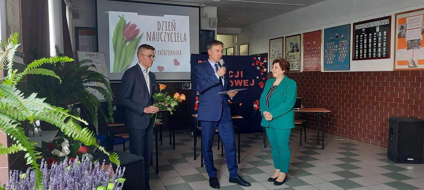 . Pan Burmistrz Michał Aloszko, który wraz z panią Dyrektor ZEASz Zofią Cichowską gościł na uroczystości, za wzorową pracę i zaangażowanie w życie szkoły nagrodził panią Magdalenę Gojowczyk i pana Dyrektora Jarosława Kacorzyka