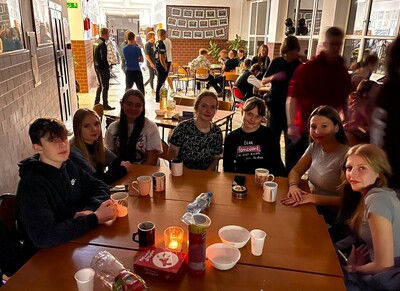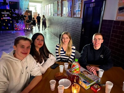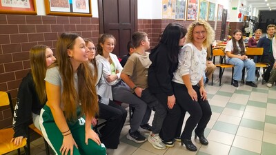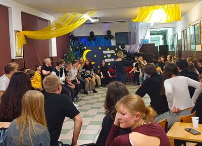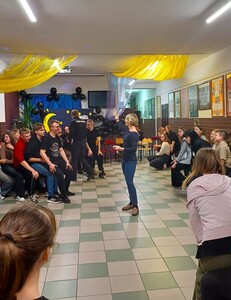 Każdego roku, w jeden listopadowy piątek, szkoła ma całkiem inną atmosferę - samorząd uczniowski organizuje wieczór w szkole. I tym razem było radośnie, integracyjnie, sportowo i tanecznie. Pojawiła się nowa aktywność - w przestrzeni biblioteki działał rockowy band. Impreza miała charakter otwarty, dlatego gościliśmy ósmoklasistów, znajomych uczniów oraz chętnie odwiedzających szkołę absolwentów.