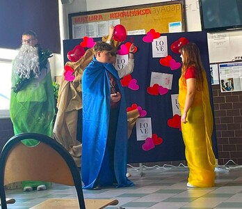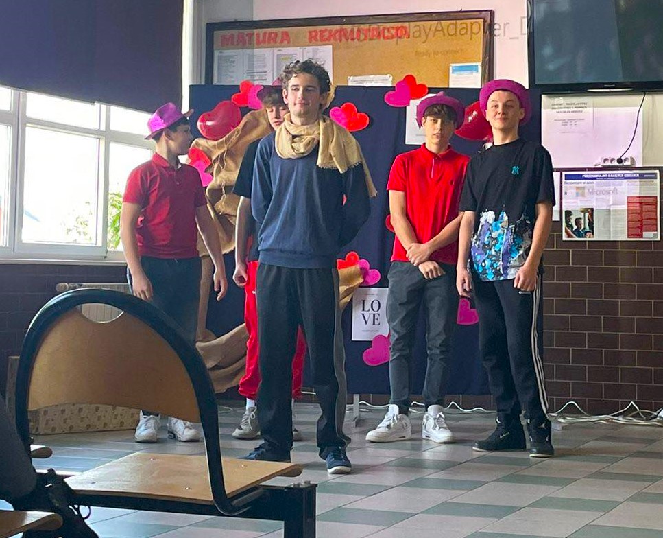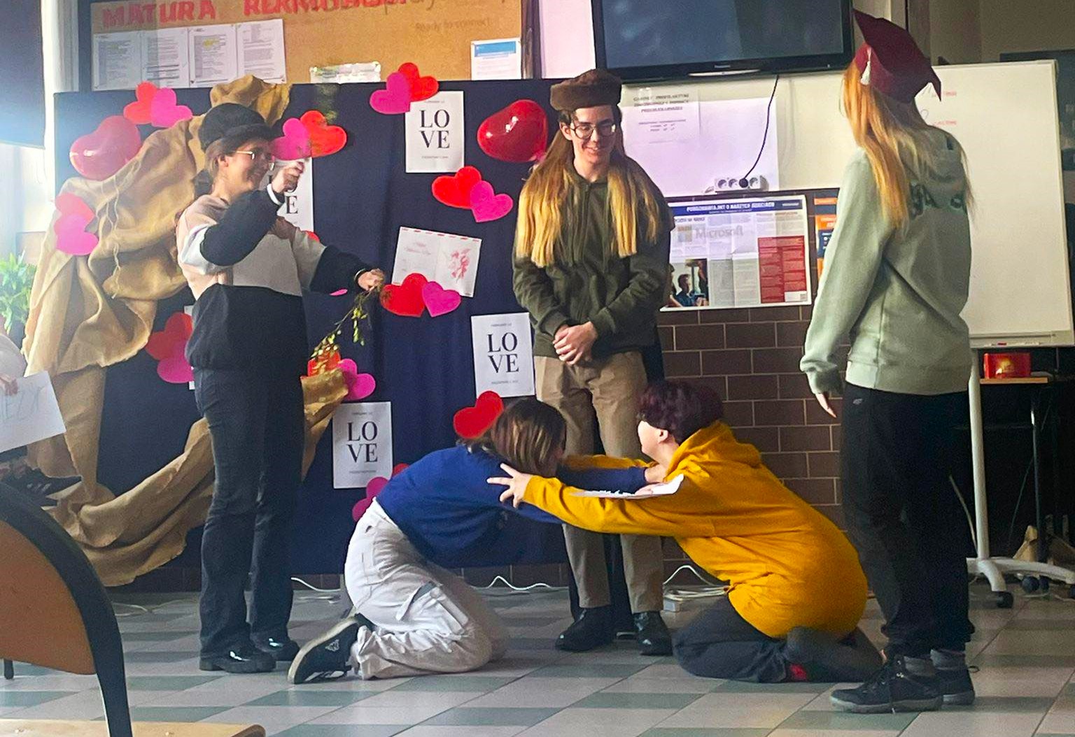 Walentynkowo - filmowy zawrót głowy zaproponował nam w tym roku samorząd uczniowski. Nasi uczniowie stawili czoła zadaniu i przedstawili fragmenty najbardziej kultowych filmów romantycznych. Mieliśmy pełne radości walentynkowe LOVE!