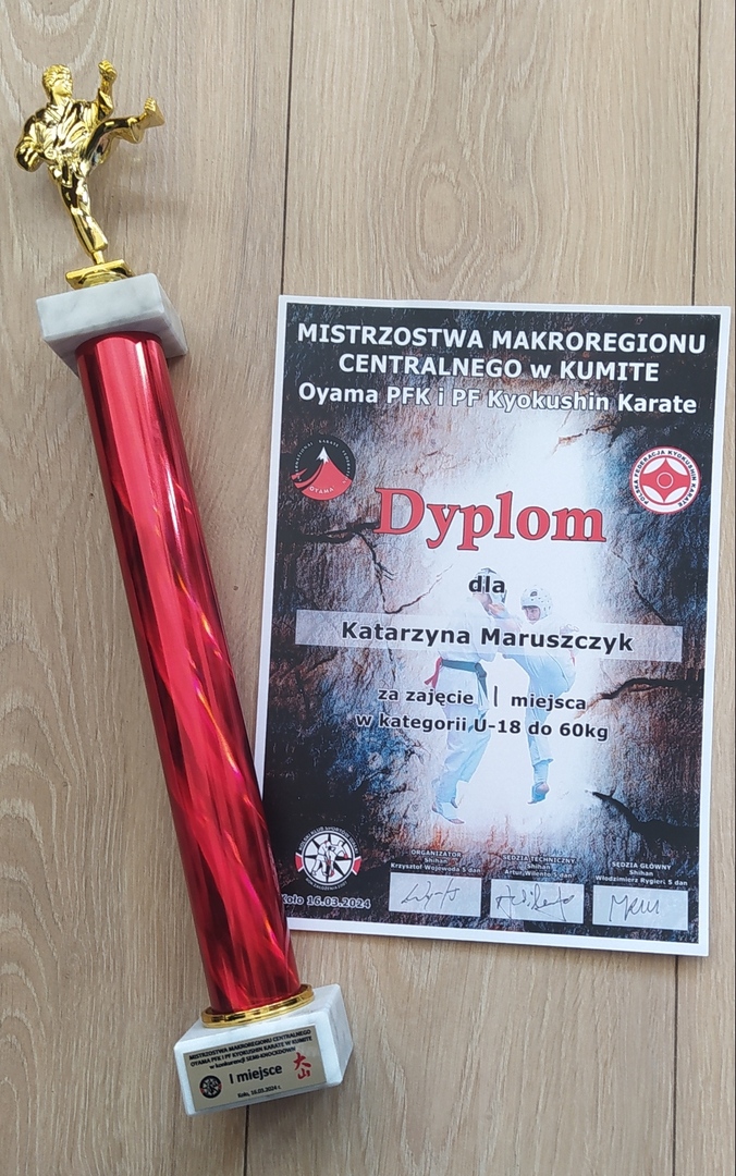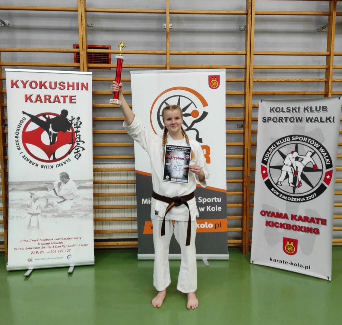 Nasza Kasia 16 marca 2024 r. w Kole w Mistrzostwach Makroregionu Centralnego Oyama PFK i PF Kyokushin Karate w Kumite wywalczyła pierwsze miejsce