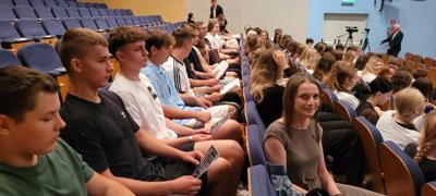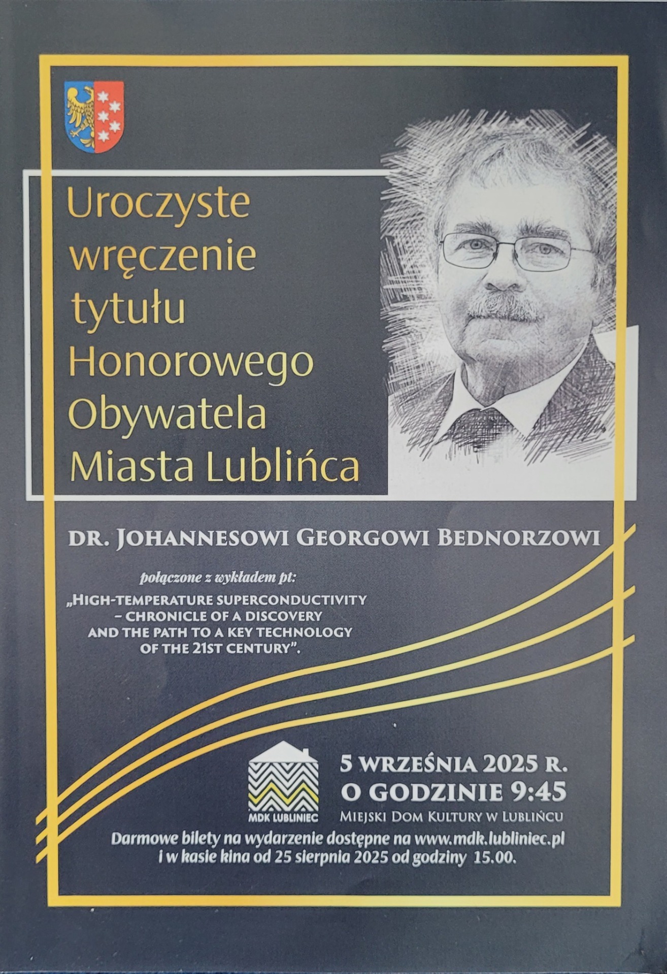 Klasa czwarta i reprezentanci klasy trzeciej mieli dziś możliwość wysłuchać wykładu w języku angielskim prof. Bednorza - laureata Nagrody Nobla w dziedzinie fizyki. Wykład dotyczący nadprzewodnictwa wysokotemperaturowego był połączony z wręczeniem tytułu Honorowego Obywatela Miasta Lubliniec, ponieważ rodzice profesora pracowali w Lublińcu, a uprzednio również w Boronowie
