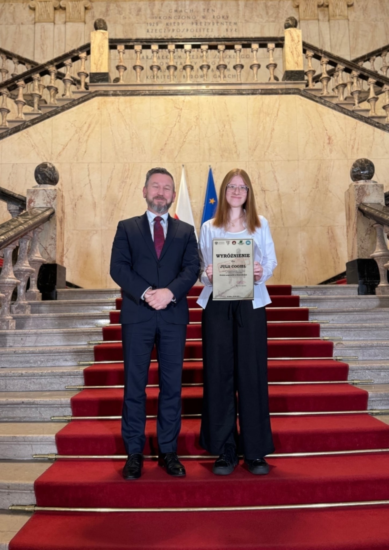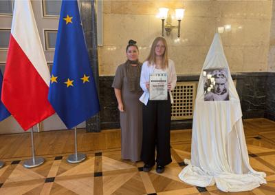 Brawo! Praca literacka Julii Cogiel została wyróżniona w XIV Ogólnopolskim Konkursie Historyczno - Literackim "Polskie więźniarki w Ravensbruck". Uczennica - ze względu na wycieczkę klasową - nie uczestniczyła w gali finałowej konkursu, która odbyła się w Krakowie. Podziękowania i gratulacje z rąk organizatorów otrzymała w Urzędzie Marszałkowskim w Katowicach, natomiast nagrody zostały dostarczone do szkoły. Julio - serdecznie gratulujemy i życzymy dalszych sukcesów